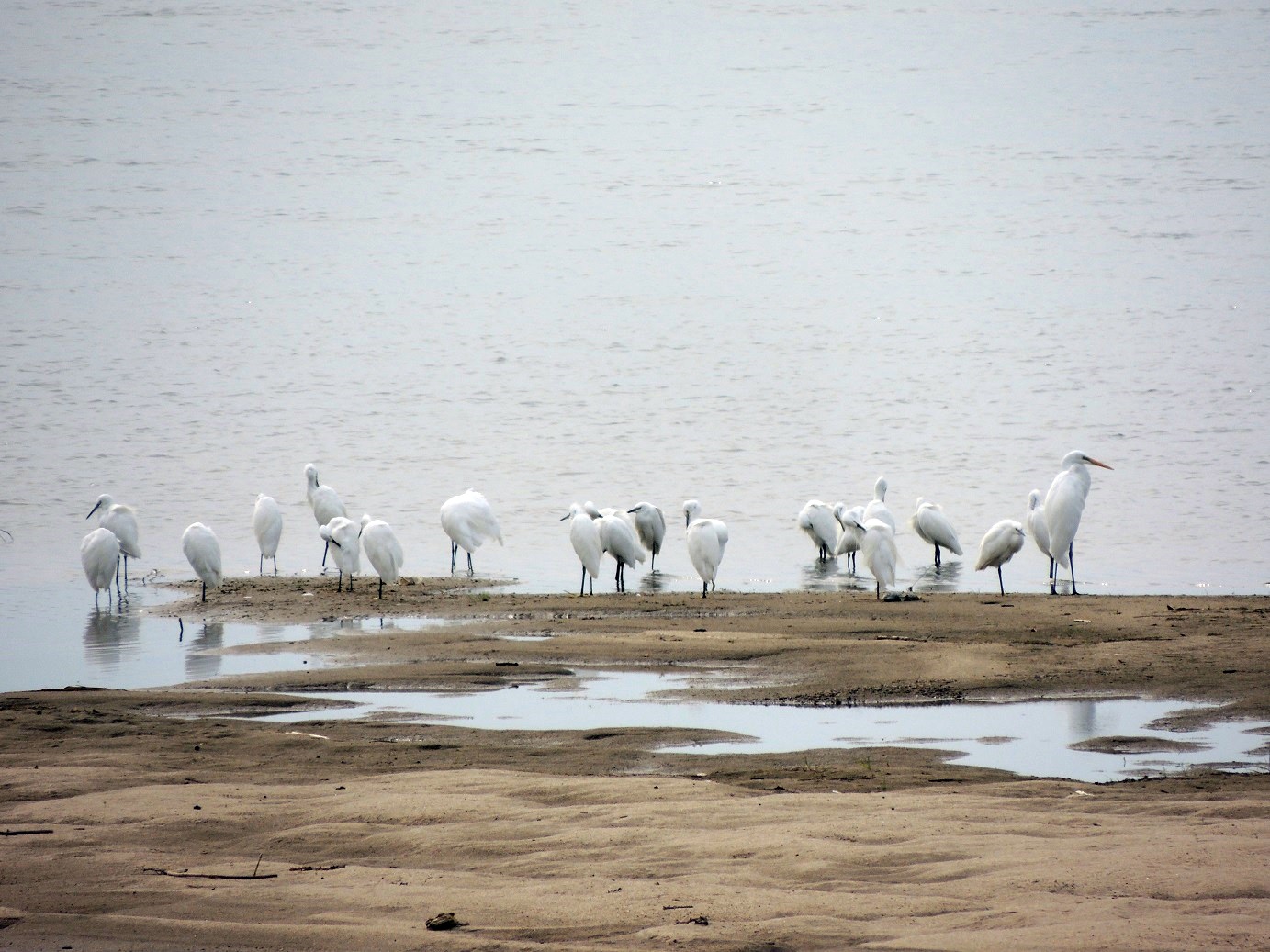 - 先月コサギの群がいた所に今月はカワウが占拠、ヒドリガモなども