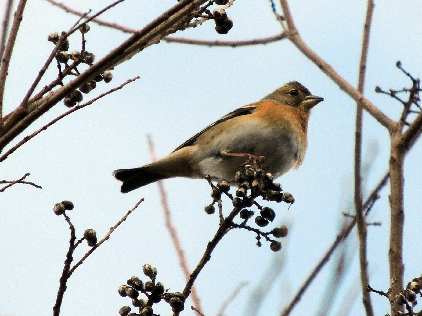 - 冬鳥のカモは個体数が少なかったものの7種、ジョウビタキが何回も、カシラダカも見ることができた。