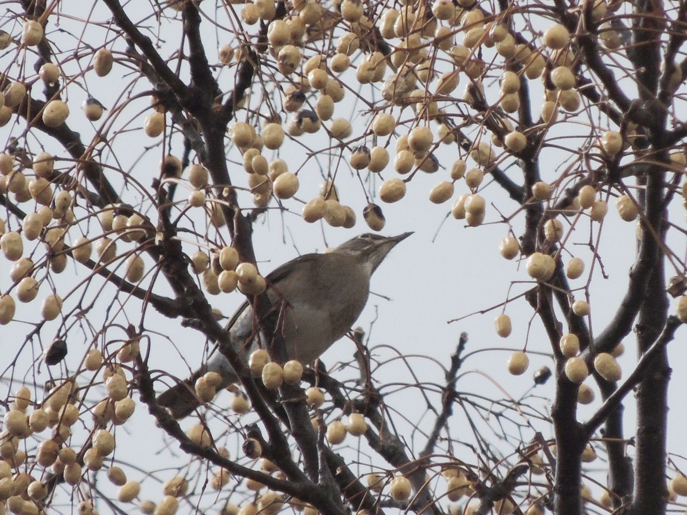 - アイリングが白っぽく写ったシロハラとセンダンの実