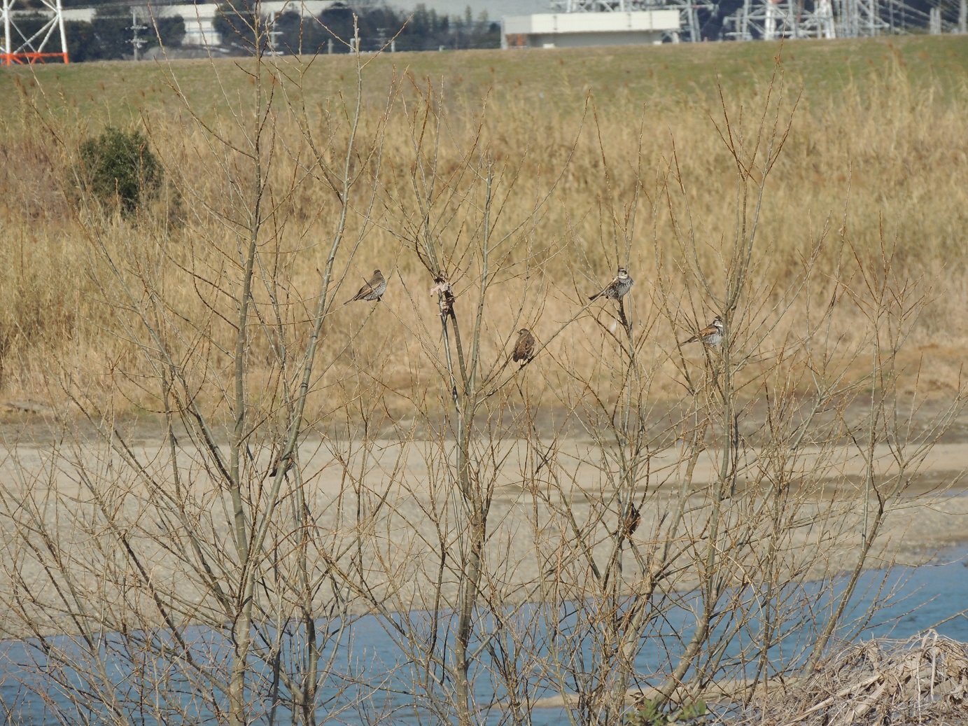 - 河川敷内に生育するセンダンの実が熟し、それを食べるヒヨドリ、ムクドリ、ツグミなどの大きな群れがあちこちで見られた。