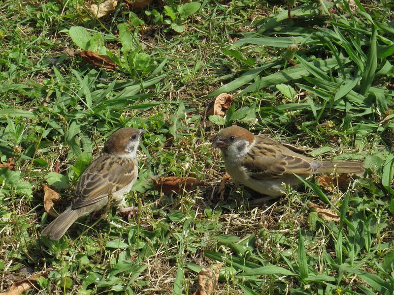 スズメ幼鳥 探鳥会集合場所で1mほどに近づいてきた。おそらく毎日餌を貰っていると思われる。