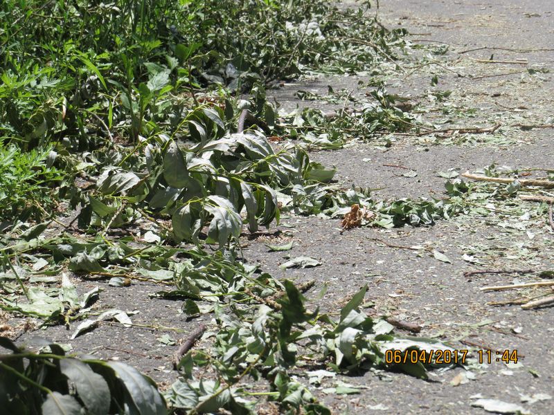 折れた柳の枝がコース道の両側に散乱。6/1夜~6/2未明にかけての雷雨・突風で折れた木の枝が、コース全域で道路に落ちていました。ほとんどヤナギの仲間の樹だけでしたので、「柳に雪折れなし」はシダレヤナギのことでしょうか。