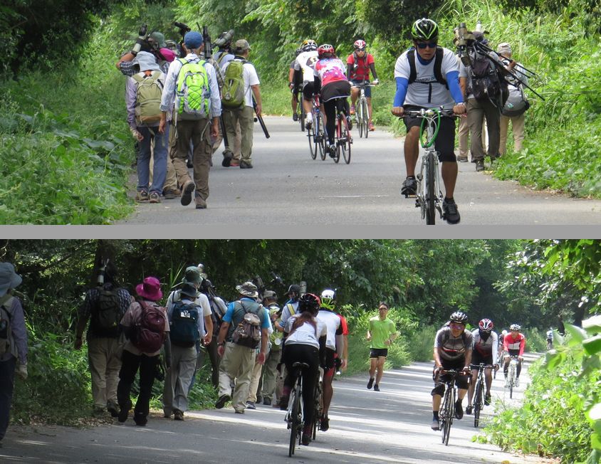 今日はサイクリング車の往来が多く、500台以上は間違いなし。鳥を見ている人の後には、