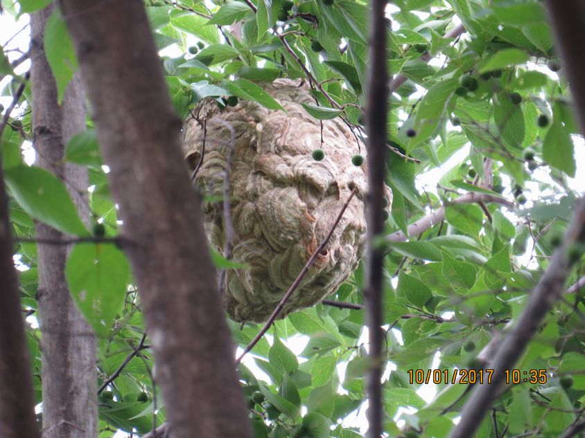 探鳥コースの頭上近く、10mほどの所にスズメバチの巣