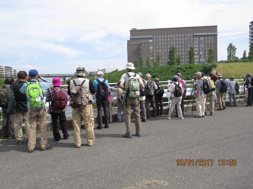 朝夕が涼しく過ごしやすくなり、秋の渡り鳥を期待しながらスタート。穂谷川ではカワセミ、そしてイソシギ4羽が飛び回った。