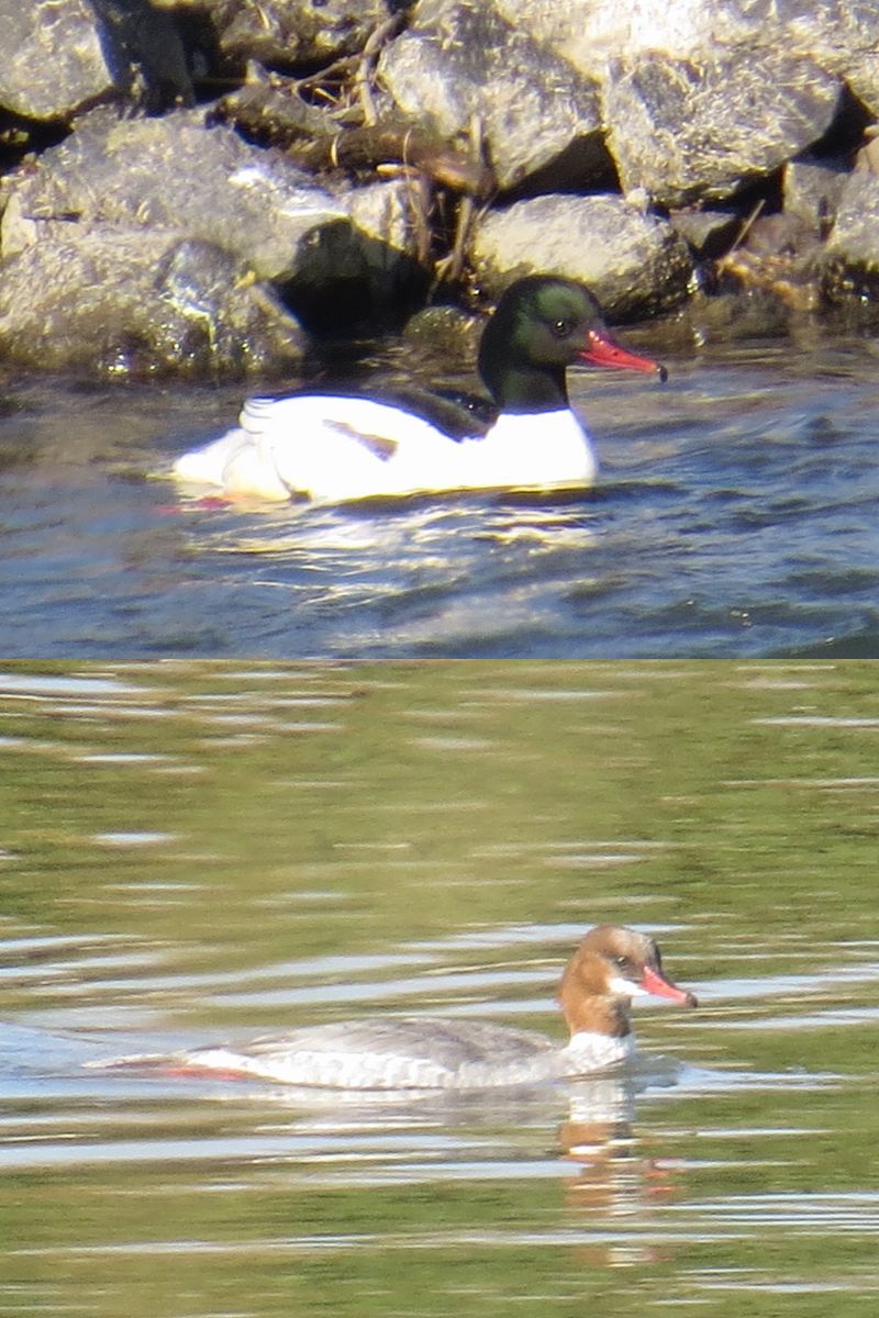 カワアイサなどカモ9種、シロハラ・ツグミ・ジョウビタキ・ベニマシコ・シメなど冬の小鳥なども順調で、50種も観察できた。