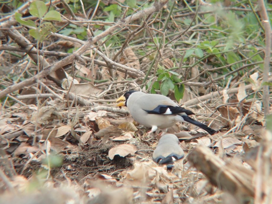 イカル:樹林の中で餌を探すイカルの群(撮影:西脇さん)