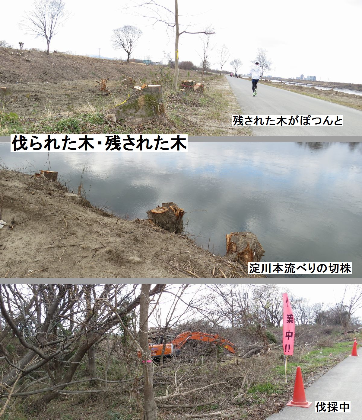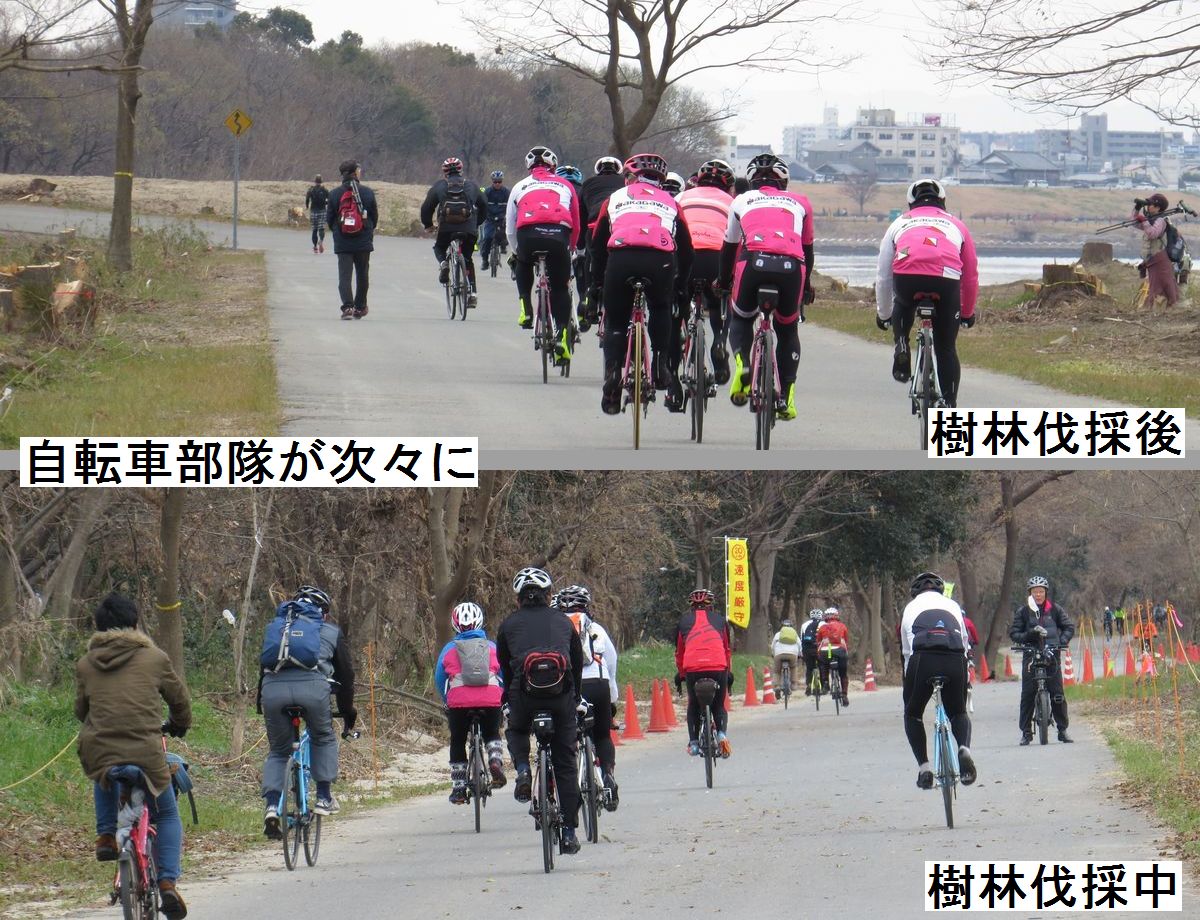 河川事務所による伐採区間では、これまで多数が見られたヒヨドリやハシブトガラスなどは明らかに減少した。