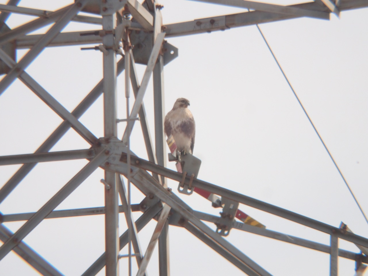 ・鉄塔にとまるノスリ:伐採で猛禽類は見やすくなった