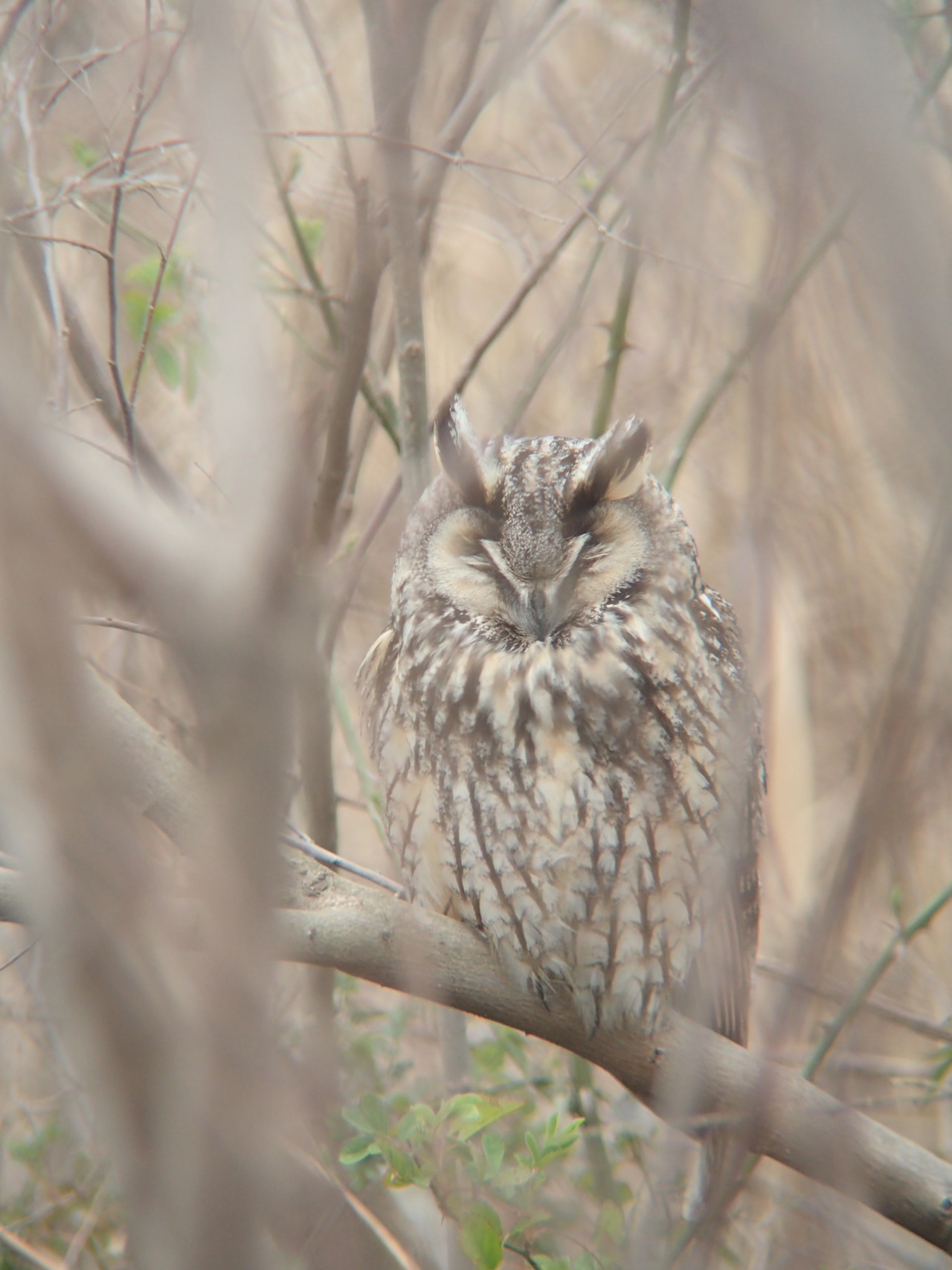 探鳥会後には一部の参加者と解散地点近くに滞在中のトラフズクを観察した。