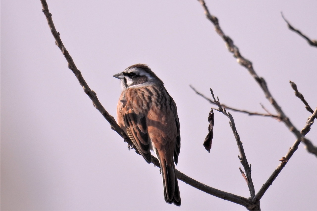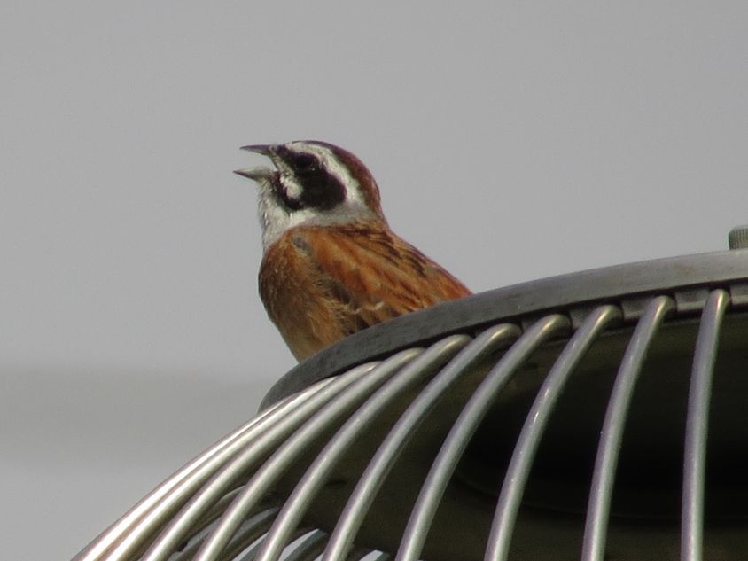 スタートすぐの淀川河川公園(枚方地区)周辺で、上空を飛びながら歌うヒバリの春の歌をバックに、ホオアカを全員ゆっくり見ることができた。