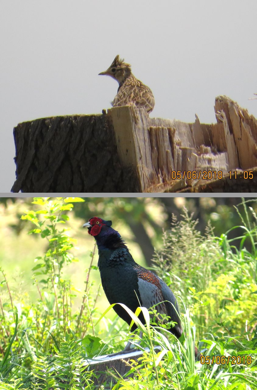 切株上で母衣(ほろ)を打つキジ、ヒバリも切株上で歌い、残された木の枝先で歌うホオジロなど、草原の鳥の姿が見やすかった。