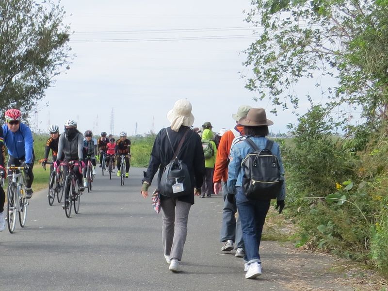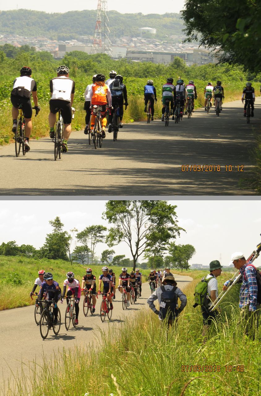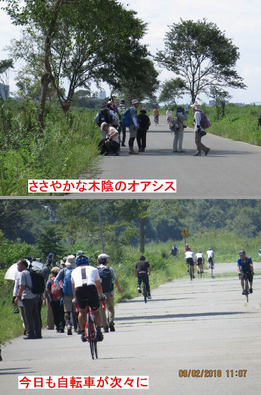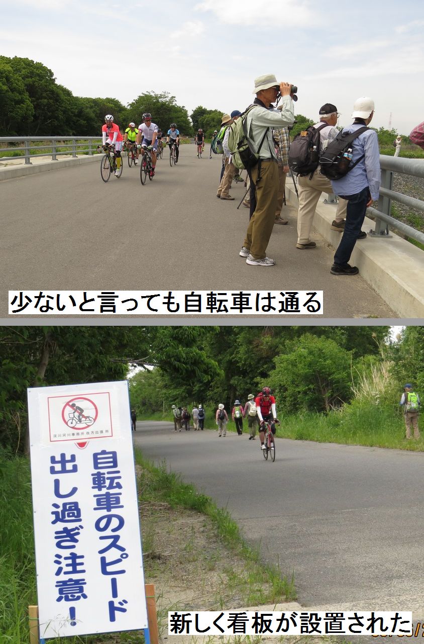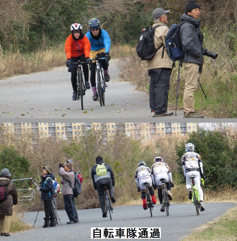 ・快晴のため自転車の通行量が過去最高で、カウントしていませんが1000台近いと思われます。写真は南行の自転車部隊が通行したすぐ後に、北行部隊が通行したので、この間、バードウォッチャーは動けませんでした。
