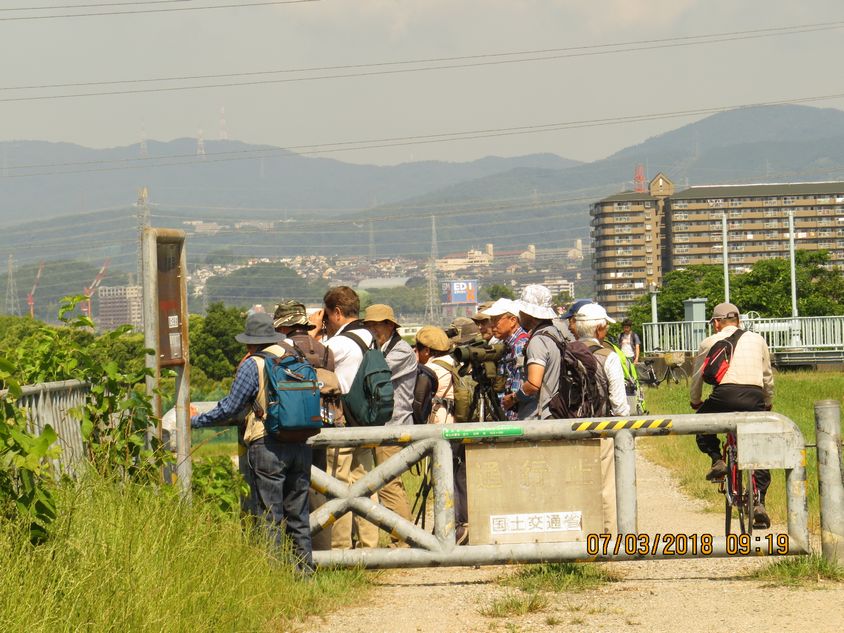 樹林にない所では探鳥コースから淀川本流が良く見えイカルチドリ・アマサギ・夏羽のカンムリカイツブリなど水辺の鳥が良く観察できた。