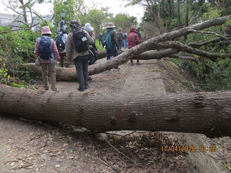 センダン林の倒木。まだ処理されておらず探鳥コース(遊歩道)を遮っている(撮影:平さん)
