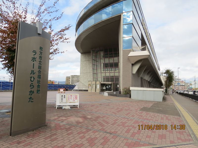 来年1月からの集合場所「ラポールひらかた」前(京阪枚方市駅北西約200m)
