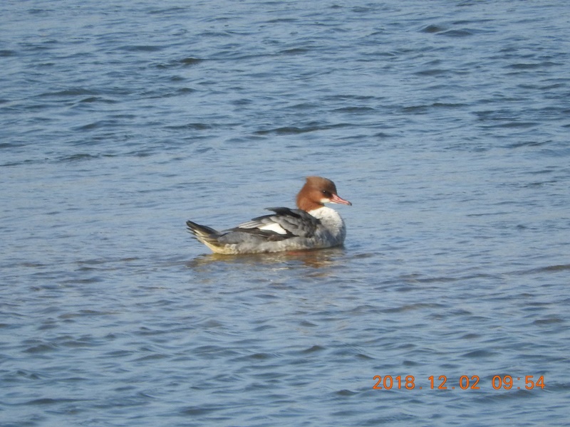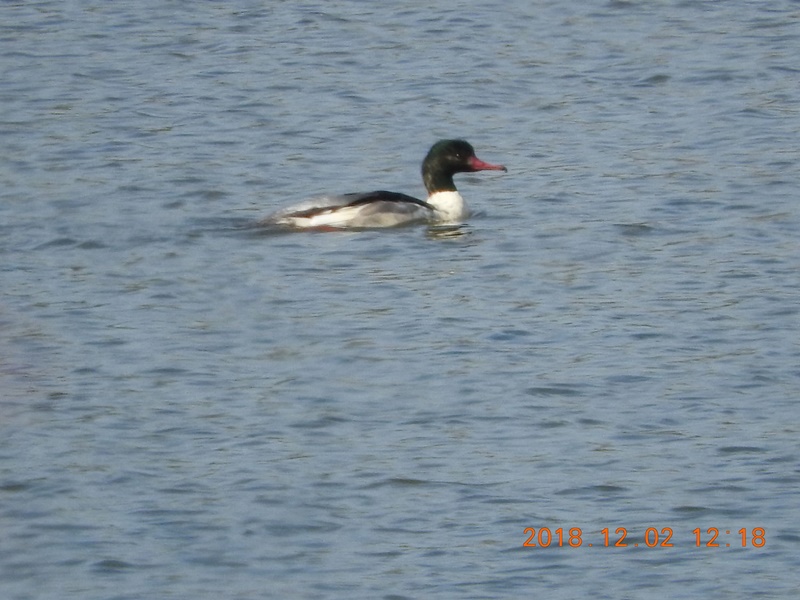 淀川本流ではカワアイサ・カンムリカイツブリ・オカヨシガモ・オオバン・コガモなどが次々にでた。