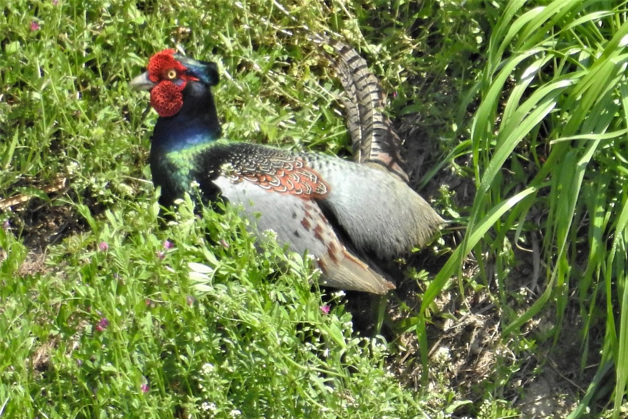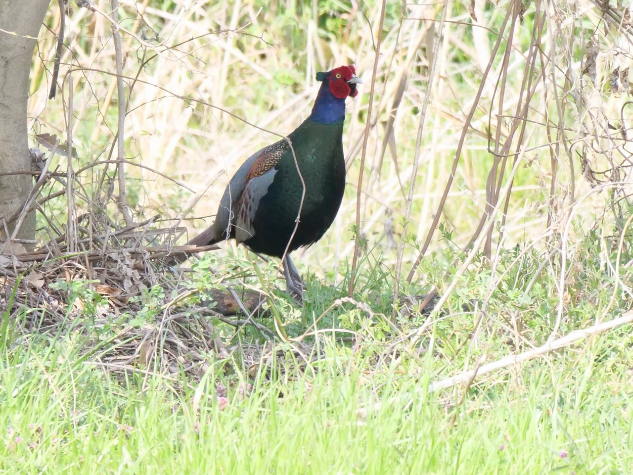 今日のコースは先月に続き、磯島グランドからは堤防上を歩いたので、キジが声だけでなく姿が雄雌とも良く見え、参加者の歓声を浴びた。