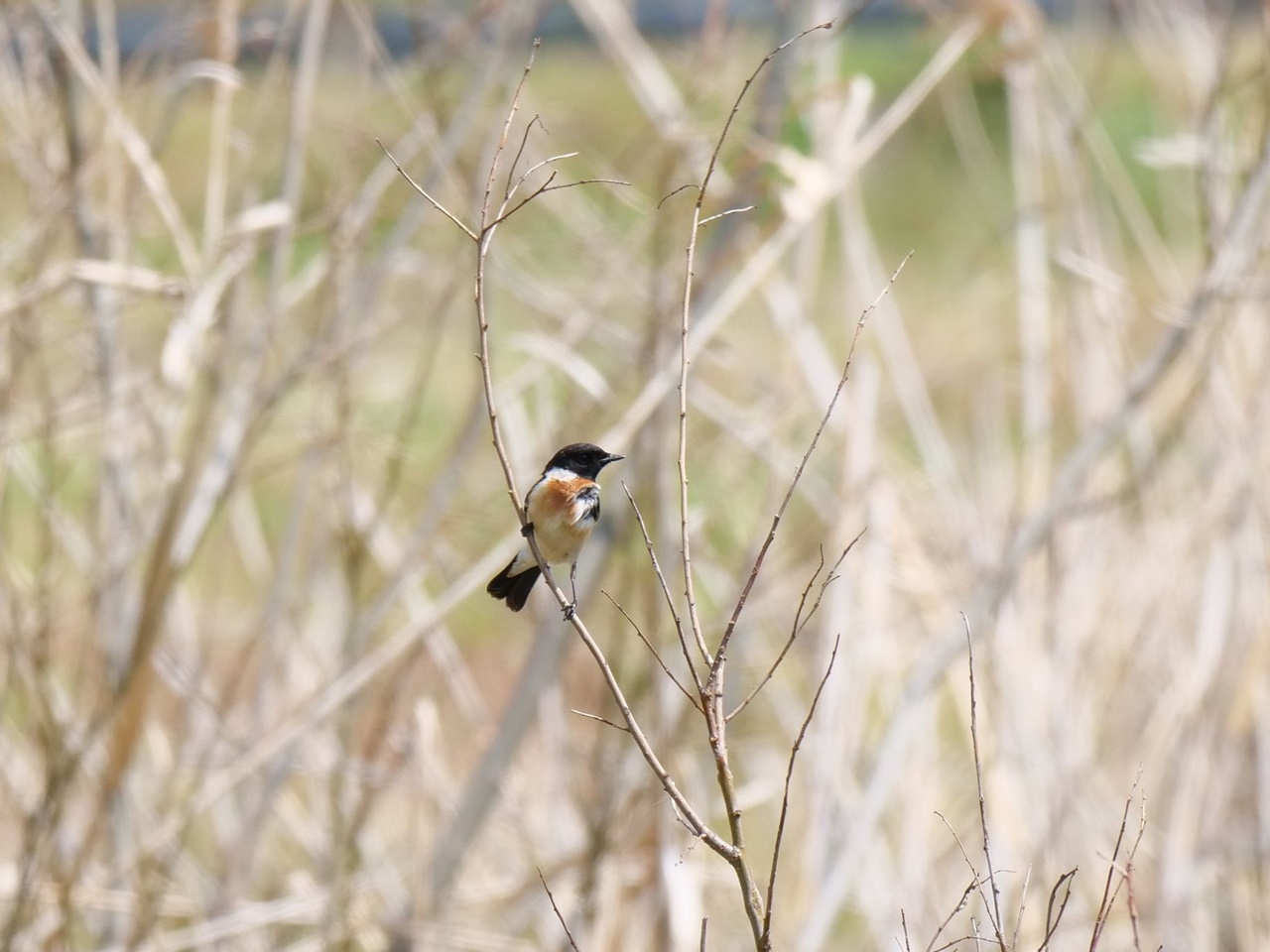 キジやウグイス、シジュウカラ、ホオジロのさえずりがあちこちで聞かれ、牧野ゴルフ場横の樹木伐採により樹林の鳥が期待できないことから、途中から堤防上を歩き、耕作地には渡り途中のノビタキやケリなども確認した。