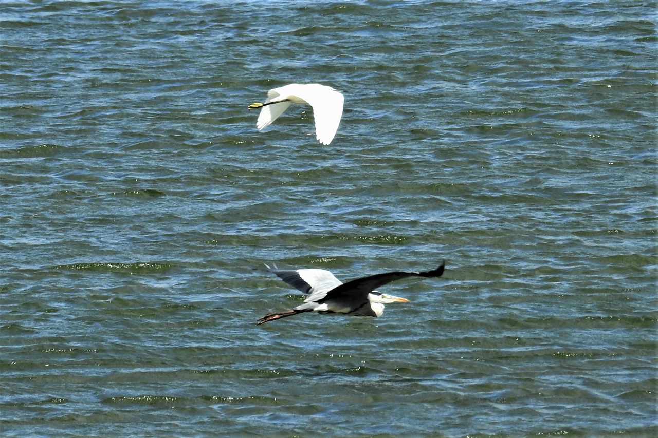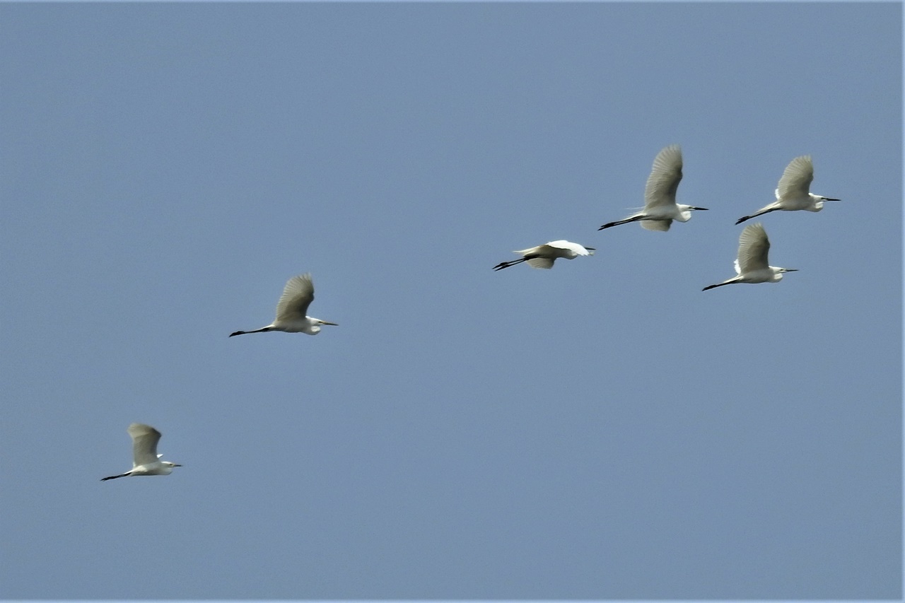 淀川本流は今朝までの雨で増水しており、水辺の鳥はサギ3種が一緒にいたこと、イソシギ・カワセミ・セグロセキレイがいたものの予想外に少なかった。一方、山野の鳥は、渡りのコサメビタキが観察できたこと、シジュウカラ・エナガなどの混群に会えたこと、ツバメ・ムクドリ・スズメが良く飛んだものの、種数トータルは25種に止まった。