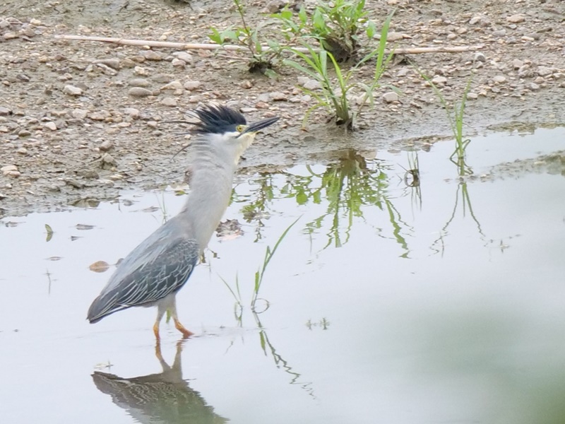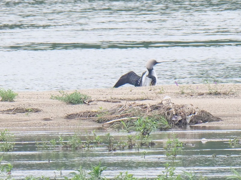 先月同様ウグイス・オオヨシキリ・ホオジロなど繁殖期の小鳥のさえずりがつづく中、ツバメ・イワツバメの飛翔、カルガモの幼鳥、そして今年もやってきたササゴイを観察した。さらに5月中旬から淀川に滞在している希少種シロエリオオハムは、高槻側にいて遠かったが全員、姿をはっきり見ることができた。