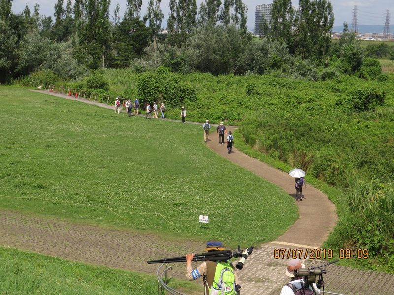 暑い夏の日となり、探鳥コースは御殿山駅までの半分のコースとした。