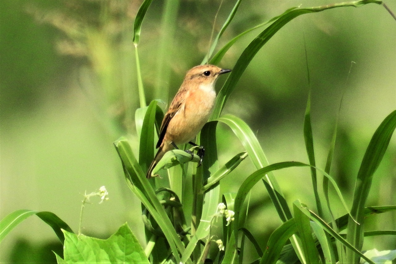 先月より種数個体数とも少なくなったものの、オオヨシキリ・ウグイス・ホオジロのさえずりが良く聞け、繁殖中の鳥もモズ・ツバメ・スズメなど幼鳥、巣作り中のカイツブリ・ヒヨドリなど、10種以上あった。チョウゲンボウやササゴイ・カワセミなど、30種の野鳥を観察することができた。