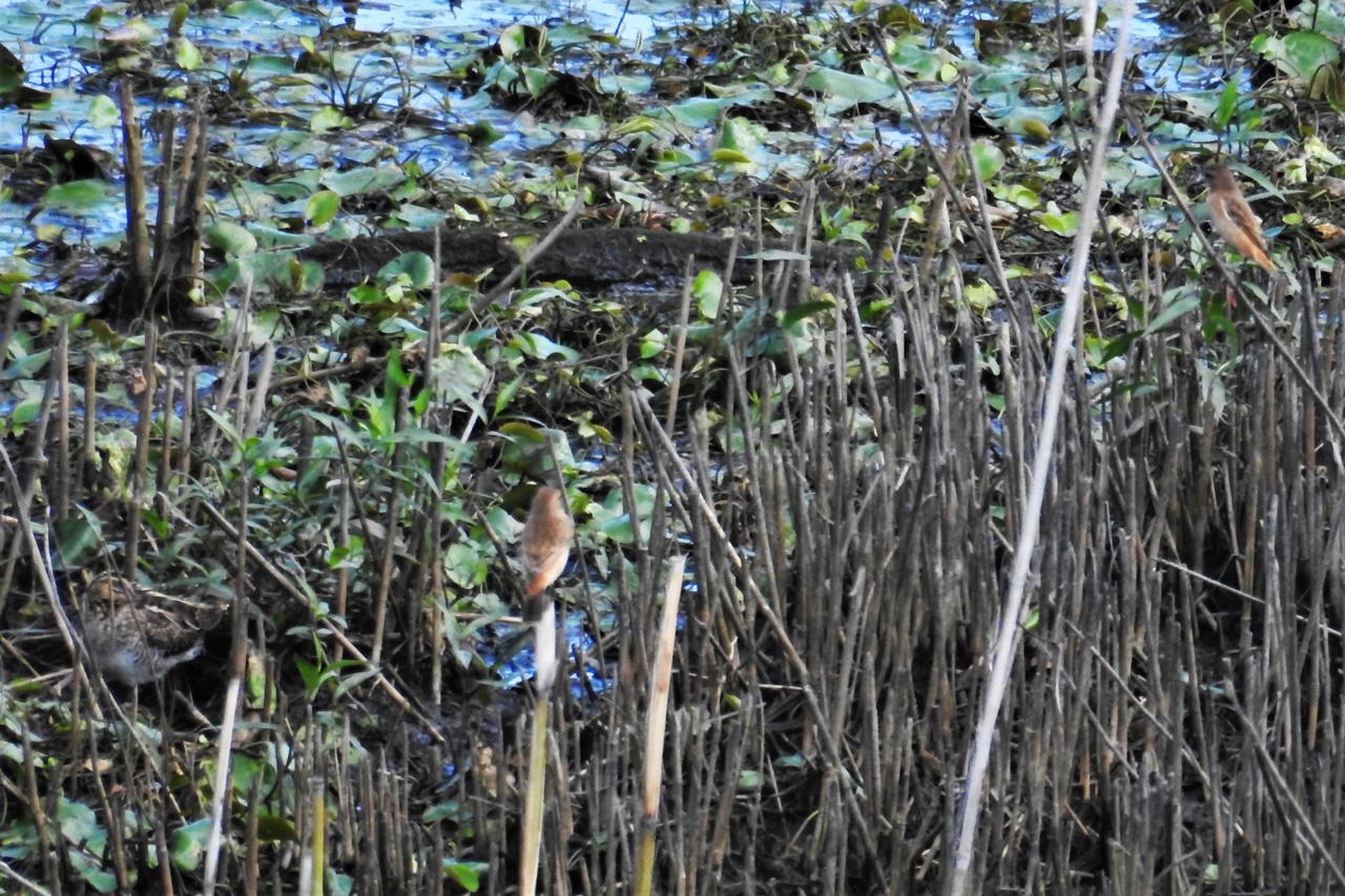 渡りの最盛期であり、普段見られないキビタキ、エゾビタキ、コサメビタキ、ノビタキを観察でき、タシギも姿を見せた。夏鳥のツバメ、コシアカツバメも最後の挨拶に残っていてくれた。カモの仲間がまだ戻っていないにもかかわらず、38種を確認できた。