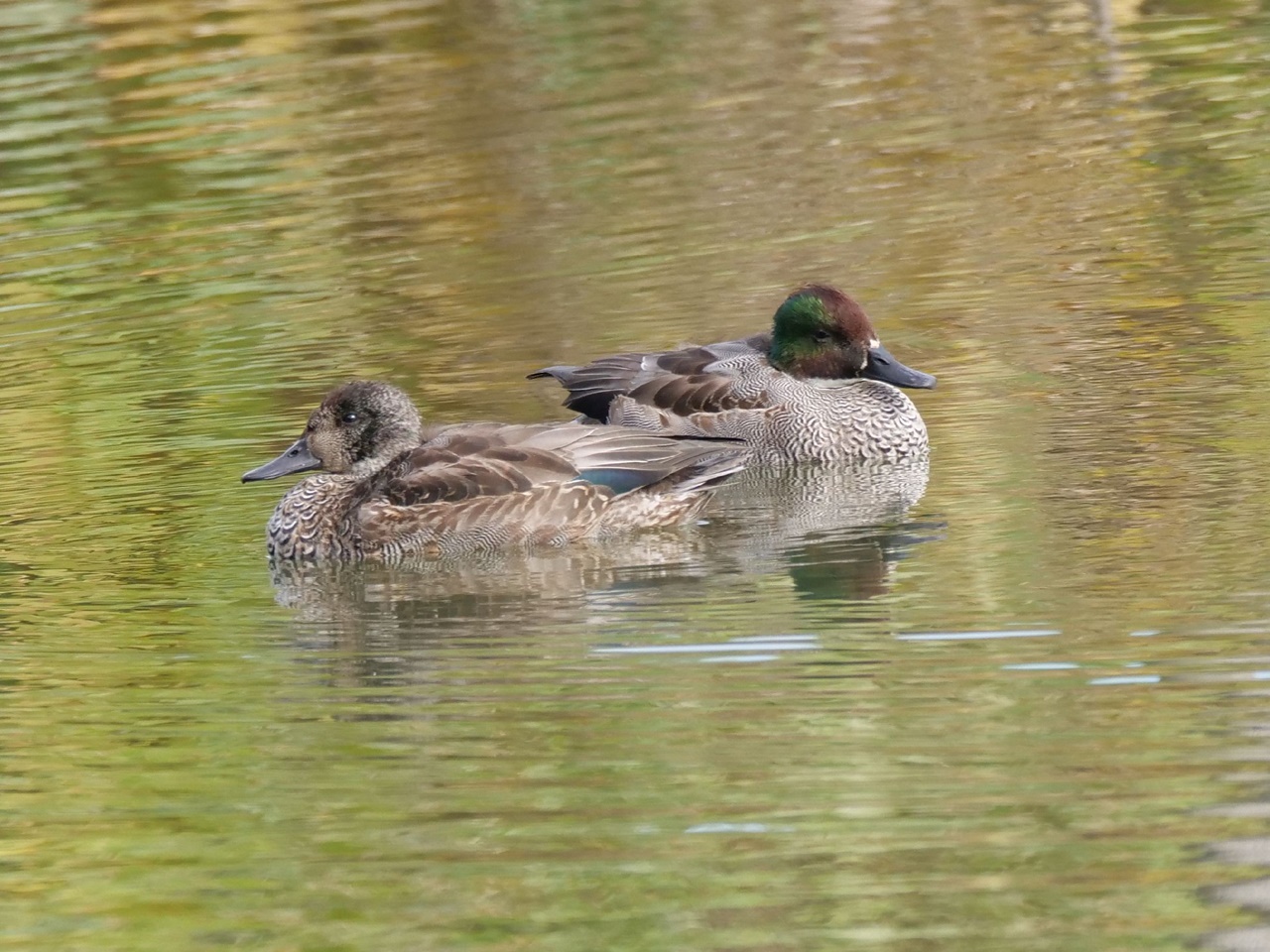 ①アオジ②オカヨシガモ&コガモ、③シメ、④ヨシガモ