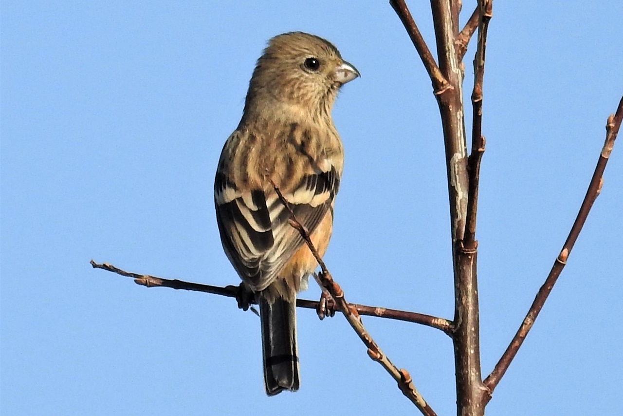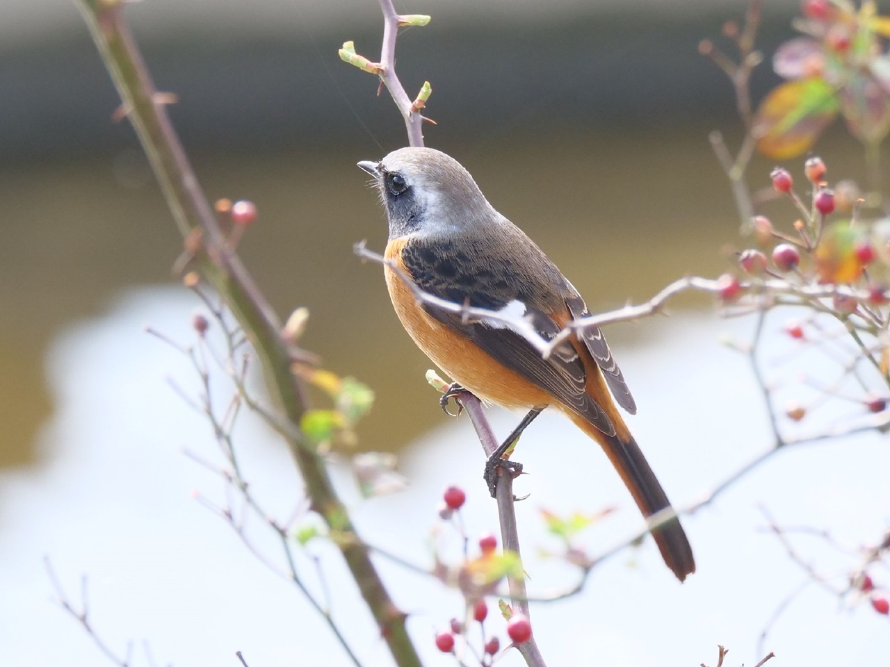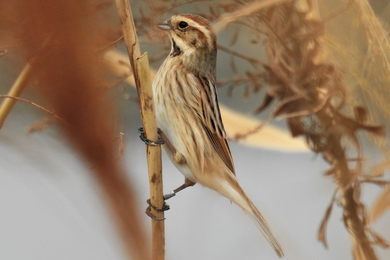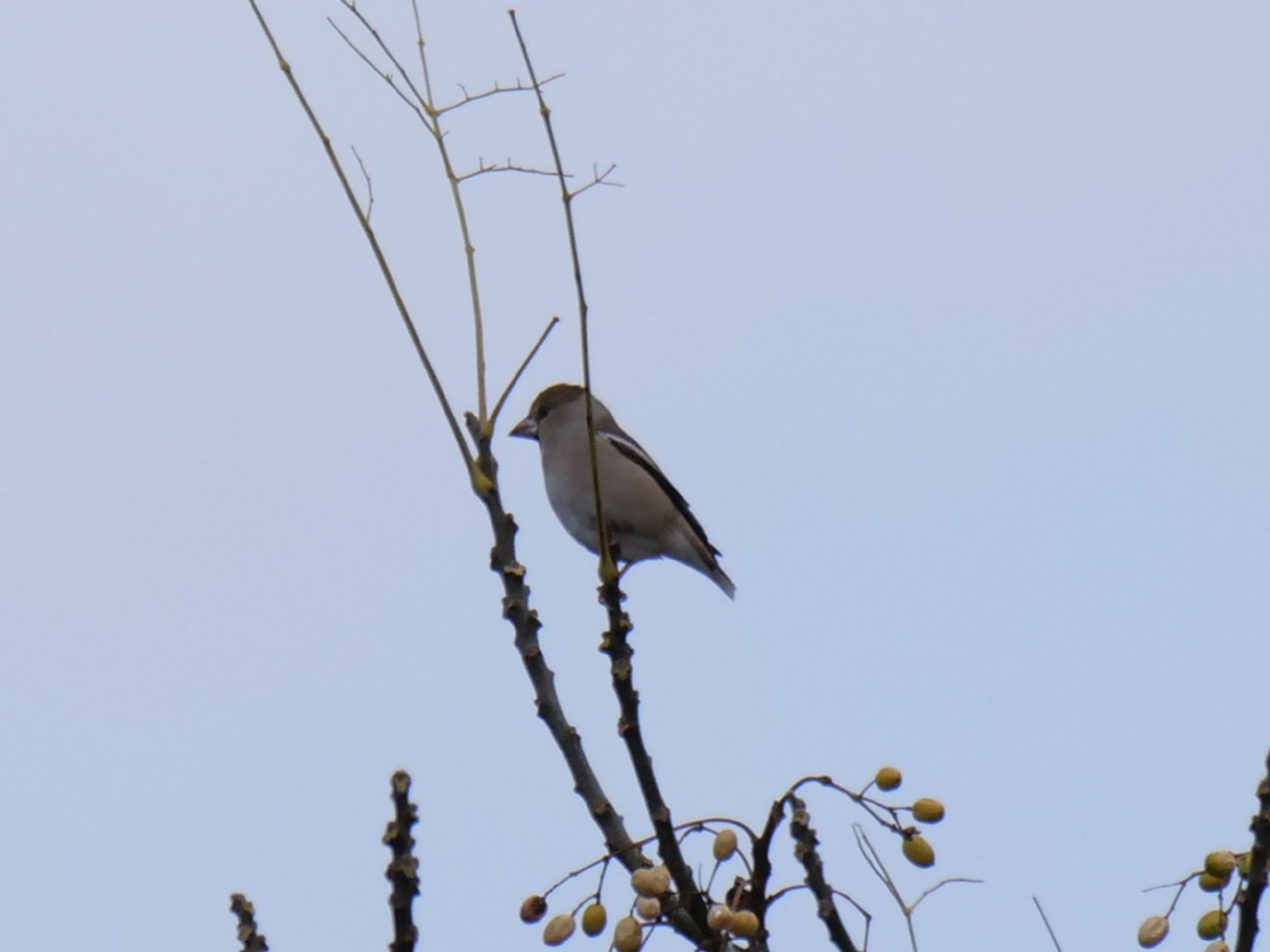 小鳥類はヒヨドリ・ムクドリがセンダンの実を求めて群で飛び回わり、カワラヒワもアキニレに群がっていたが、お目当てのベニマシコは見られず、オオジュリンも1羽に止まった。