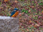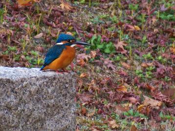 - 日本庭園の池ではカワセミがじっくりと見られ、背中の翡翠色に歓声が上がった。