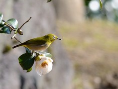 - またルリビタキのオスやミヤマホオジロの小群にも出会えた他、ヒヨドリがツバキの花に嘴を差し込む様子なども観察した。