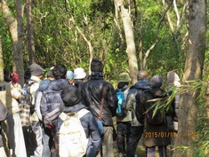 - スタート直後に賑やかなカラ類の混群に出会い、エナガ、シジュウカラやヤマガラが近くに来てくれたので、初めて参加された方は大喜び。