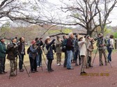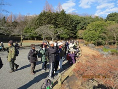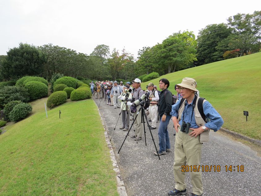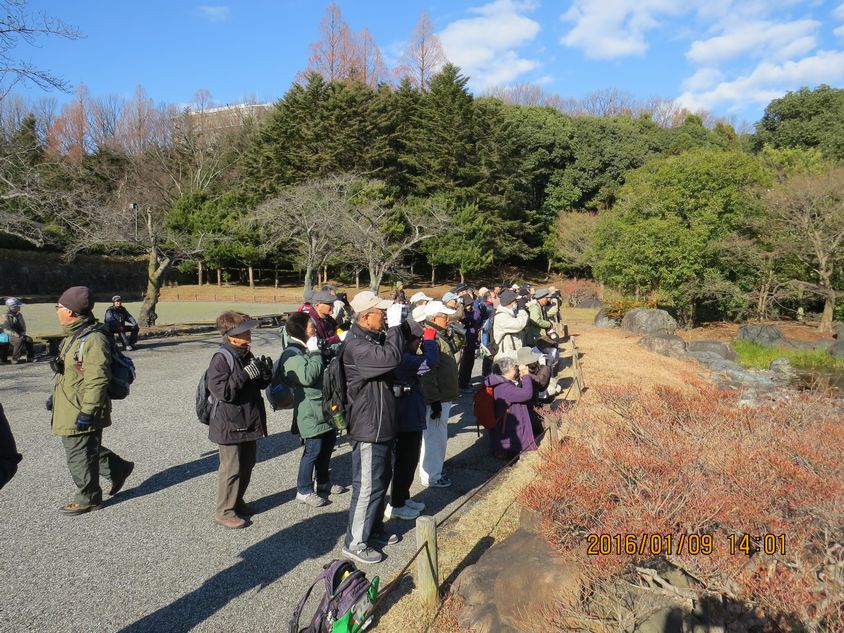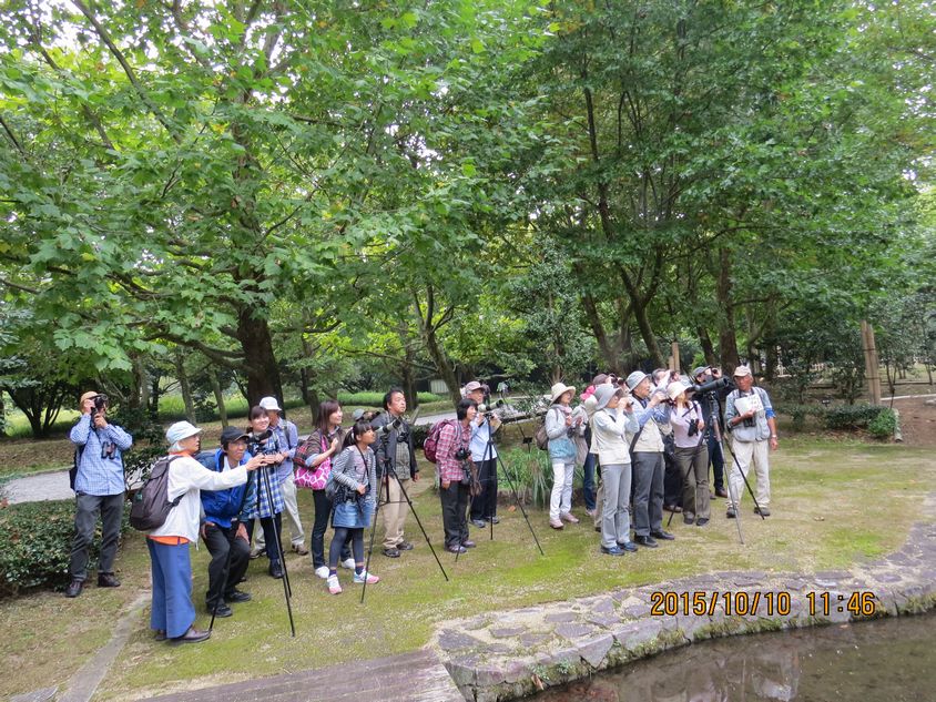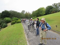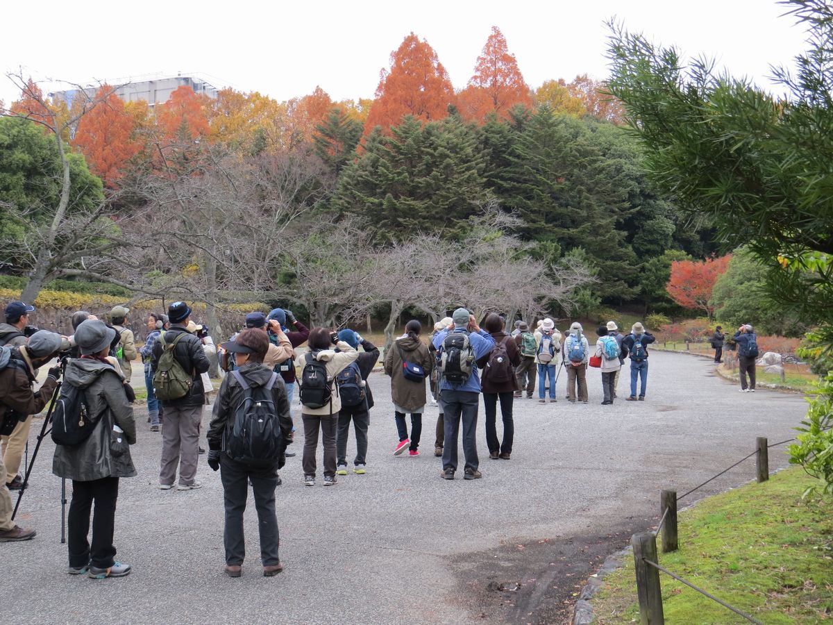 - 日本庭園でカワセミを見る参加者(撮影:平さん)
