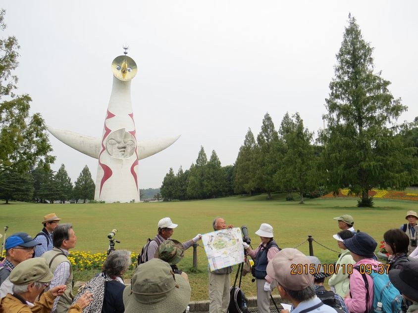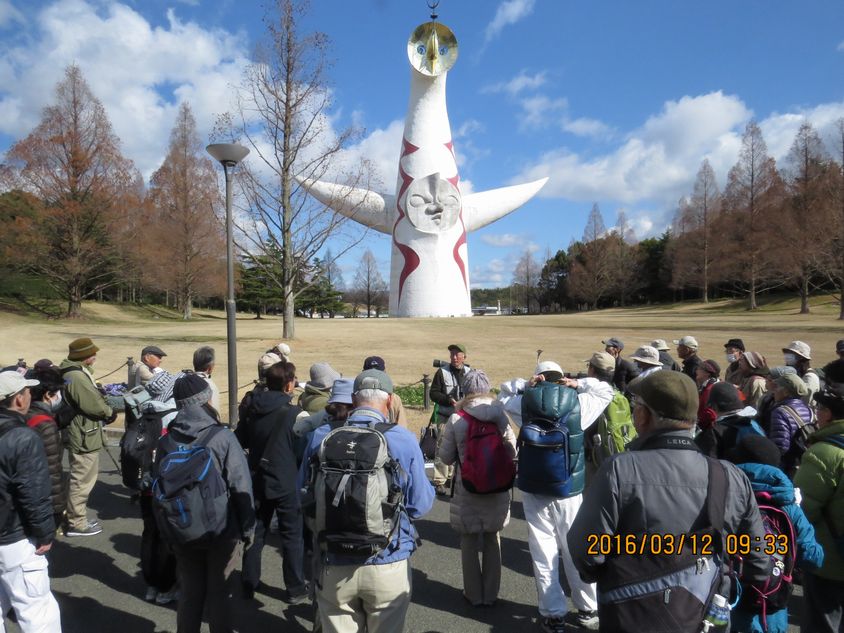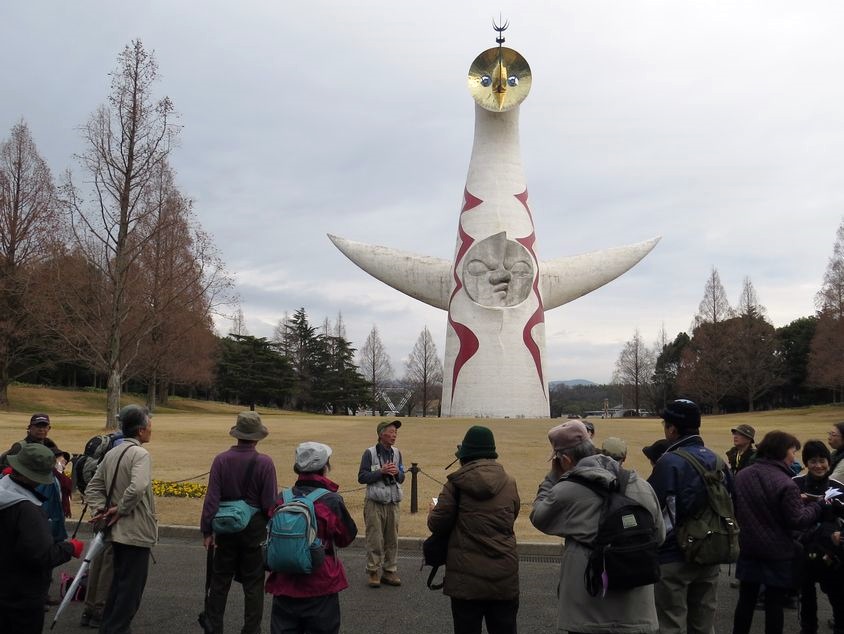 - 恒例・太陽の塔の前でスタートの挨拶(撮影:平さん)