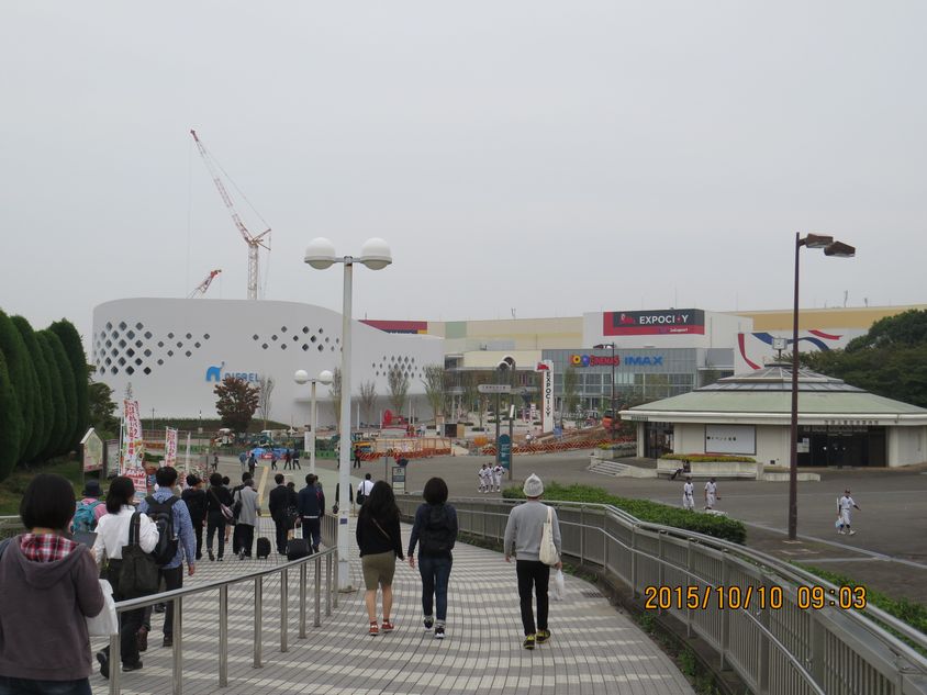 - 11月19日オープン予定で、エキスポランド跡地に建設中の大型複合施設「エキスポシティ」が姿を見せ始めました。写真はモノレール「万博記念公園駅」を出てすぐのスロープからの景色です