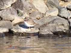 - 先月から滞在しているイカルチドリ、日本庭園心字池の北側から見る