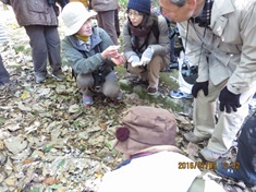 - みずしましの池ではヒドリガモの群れに混じるヨシガモのメスの識別にチャレンジしたほか、ルリビタキやジョウビタキの美しい姿に歓声が上がった。