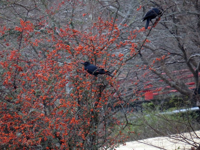 - ピラカンサにカラス(撮影:平さん)