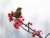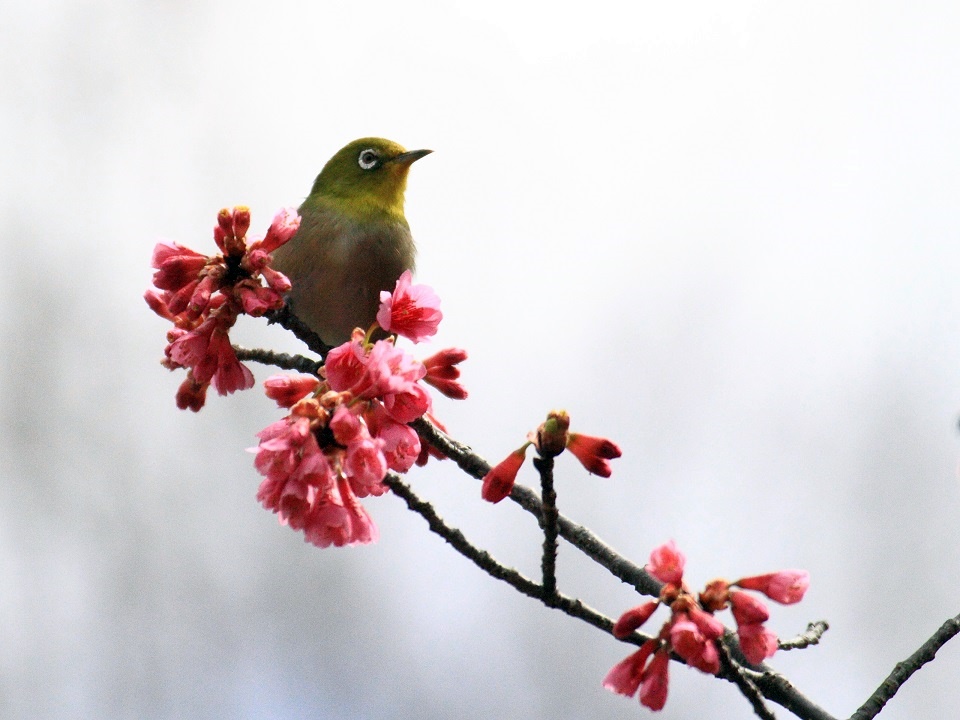 - カンヒサクラとメジロ(撮影:藤原麻里子さん)