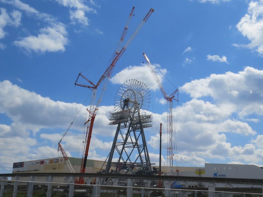 - エキスポシティに日本最大120mの観覧車建設中。4月に開業予定(撮影:平さん)