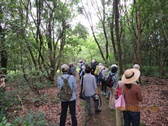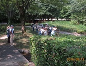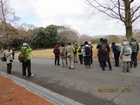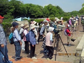 - 午前中は風もありしのぎやすかったが、午後は一転して厳しい暑さの中を参加者の様子に気を配りながら公園内を歩いた。
