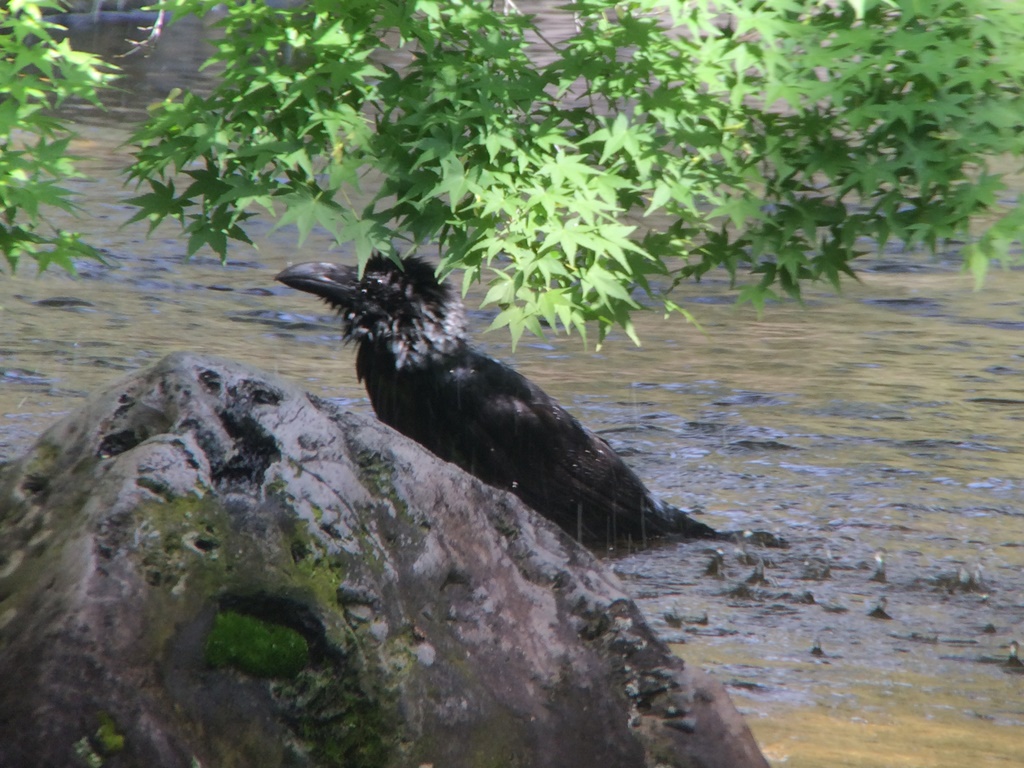- ・カラスも暑いのでしょう。水飲み、水浴びなど、うらやましく思いながら何回か観察しました。(撮影:平さん)