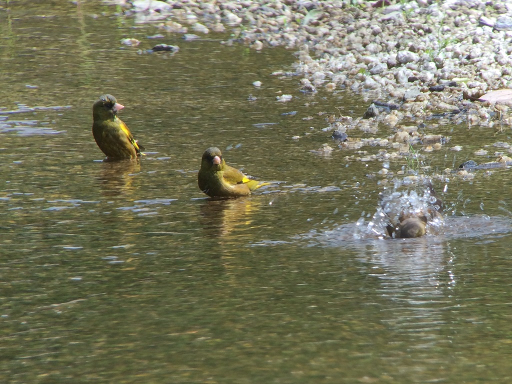 - 水浴びするカワラヒワ(撮影:山口さん)