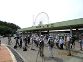 - 7月1日営業運転が予定されている日本最大123mの大観覧車をバックに主担当足立さんの開始挨拶。(撮影:平さん)