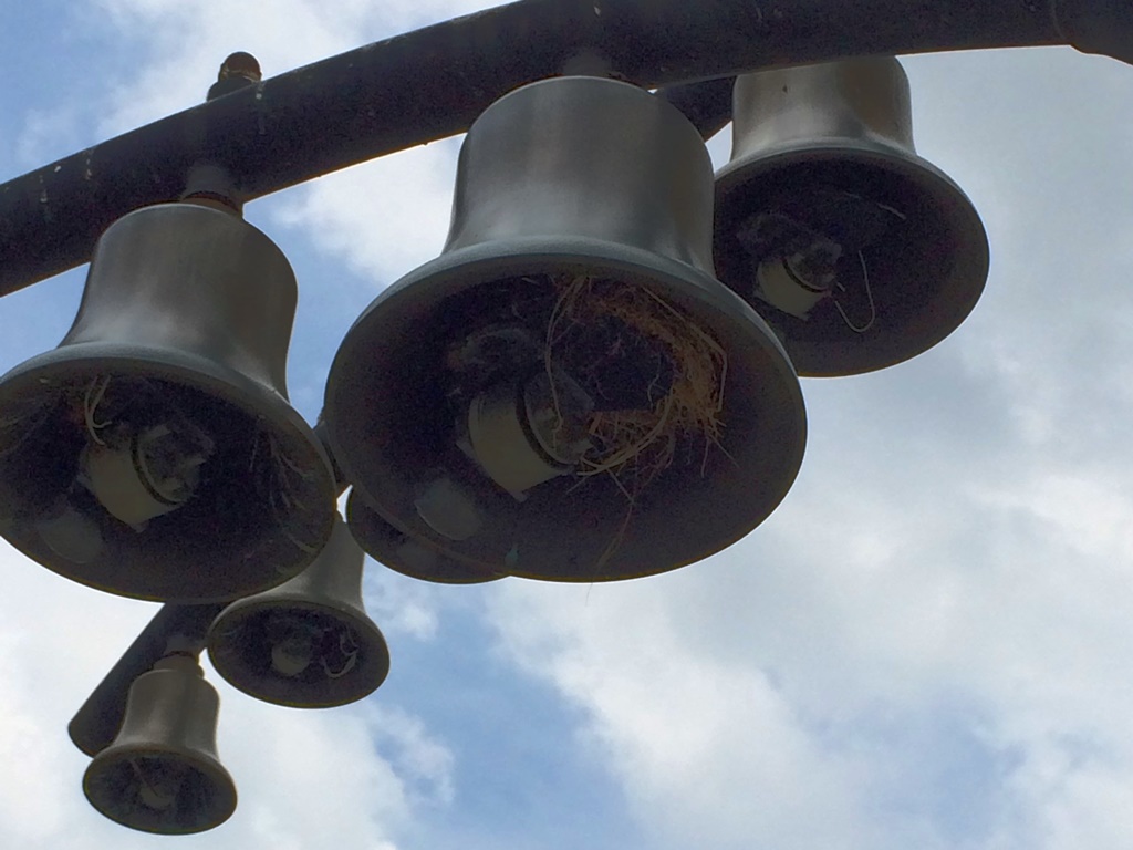 - 砂の広場にあるフラワーベルにスズメが営巣(撮影:山口さん)