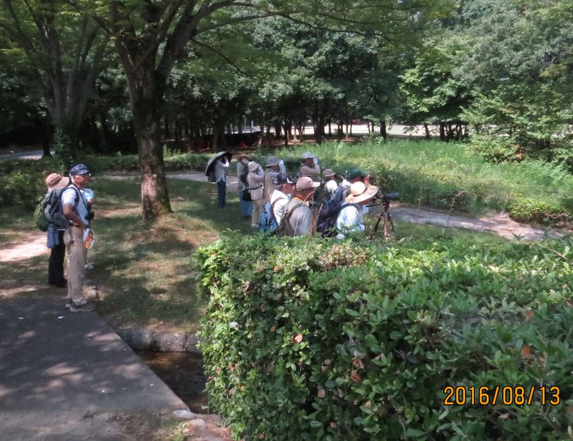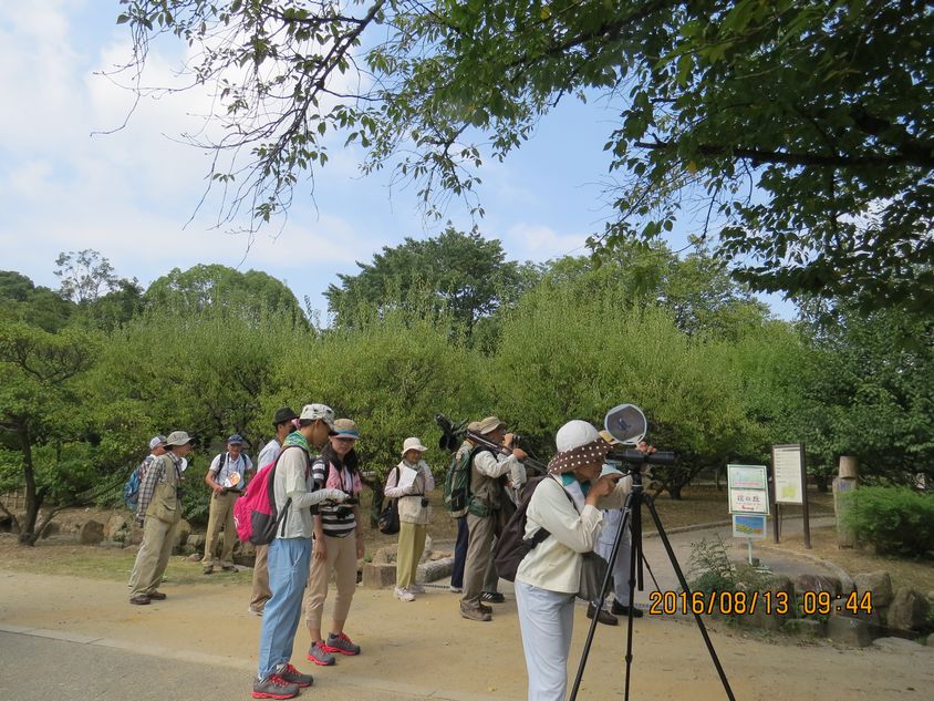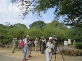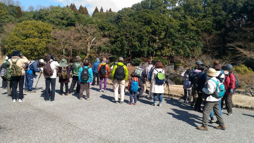 - カワセミも3カ所で観察できたほか、日本庭園では外周のクヌギの木に止まっているアオバトに参加者の歓声が上がった。