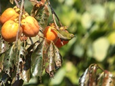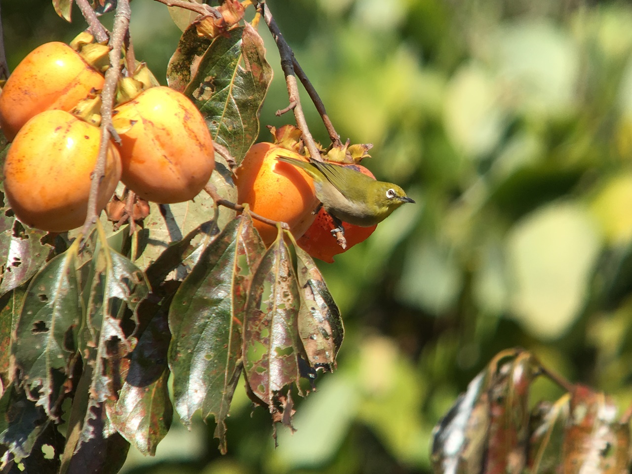 - 万葉の里ではカキの実を啄むメジロの姿が見られた。
