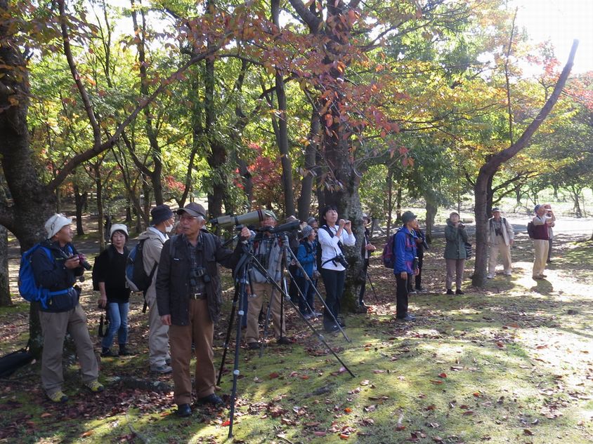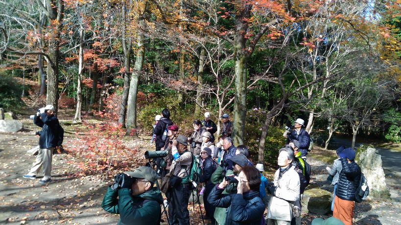 - 快晴で暖かく、絶好の鳥見日和。サクラ、ケヤキやトウカエデなどの紅葉が美しい公園内を、渡ってきた冬鳥を探しながら歩いた。