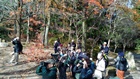 - 「万葉の里」で柿の実に来るメジロを楽しむ参加者(撮影:平さん)